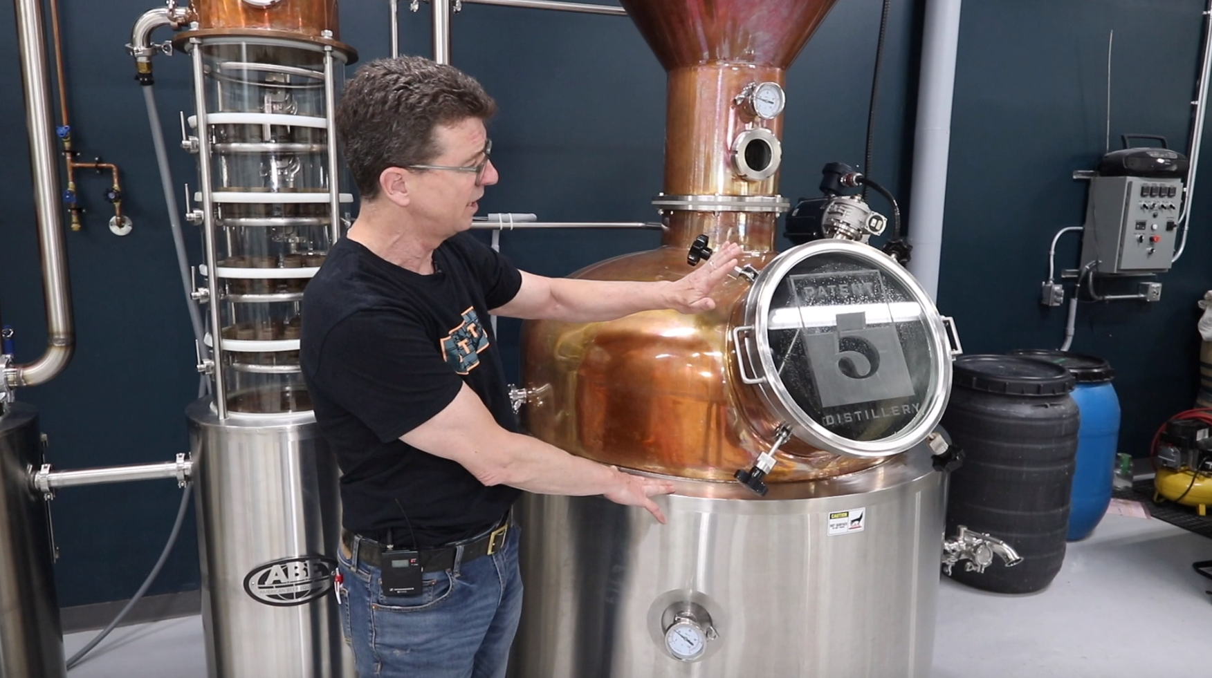 He explains that as a small distiller, Patent 5 is outfitted with a 400 gallon mash tun/stripping still. He then walks me through the process, which I will attempt to explain as best I can (don’t try this at home) –