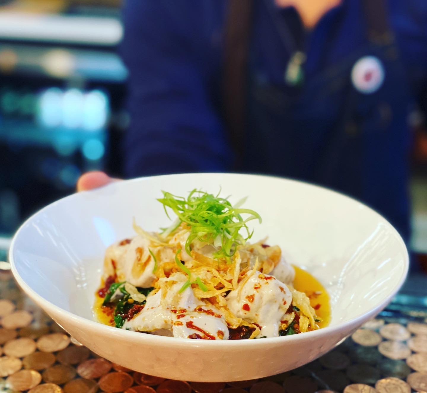 Amsterdam Tea Room is featuring Hutspot Dumplings. “I made a dumpling similar to gnocchi, that gets tossed in a cashew cream sauce, then served over sauteed kale and purple sauerkraut, topped with chilli oil and crispy onions.” (This dish will also be featured in week 4 of the upcoming Exchange District Cooking Club series, where Chef Epp will guide participants in the making of the dumplings via a live cooking show! More details & tickets here.)