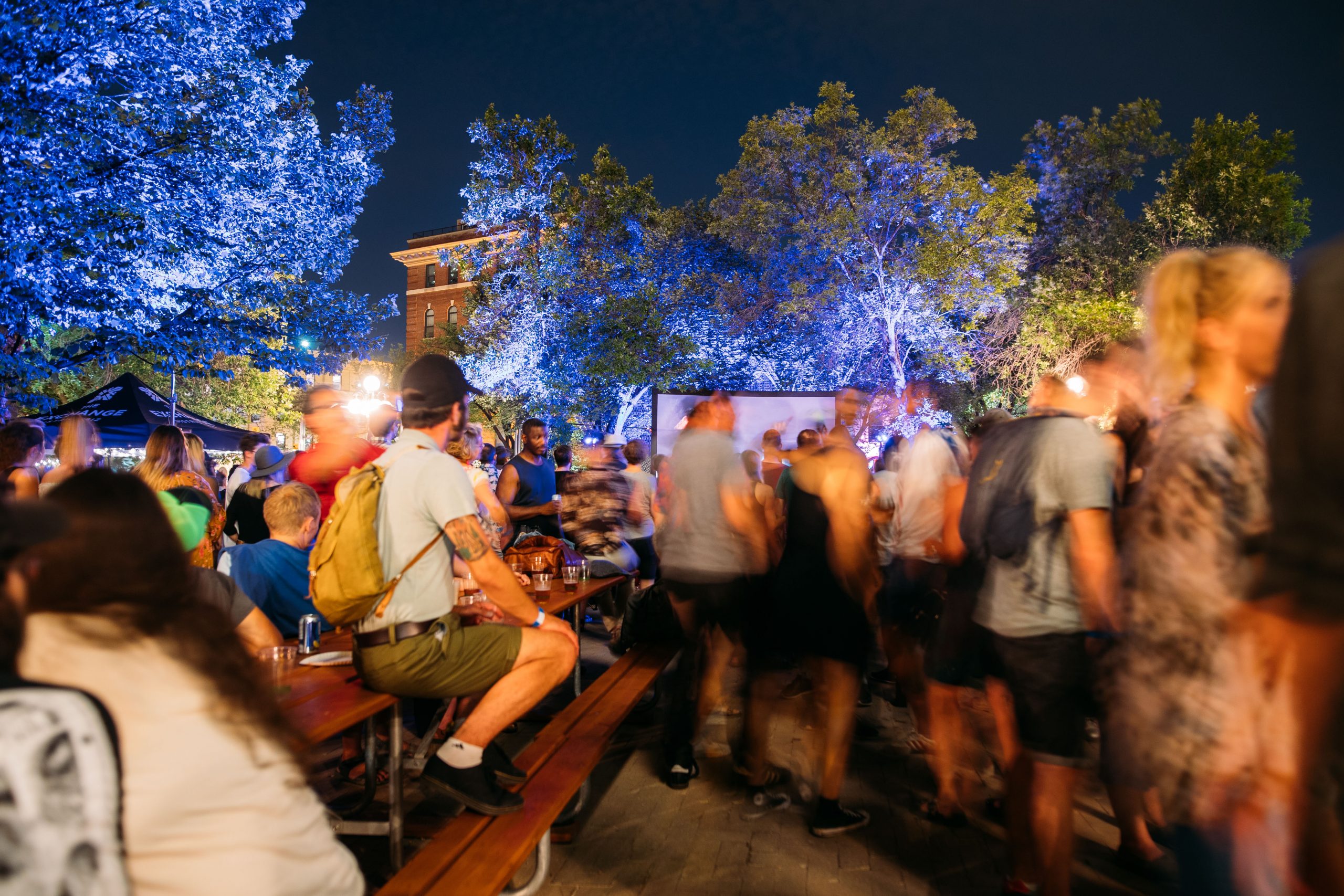 The warm sax, trumpet, and djembe riff off of each other, warming my cold-soaked toes. I walk to Bannantyne —the Festival dominates the majority of the Exchange’s West side now. At the centre of it all, the Cube shines against the night sky. On my way into the crowd, I grab a few Jamaican patties, and a Nonsuch beer.