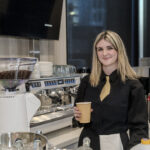 A cozy 20-seat coffee bar in the 201 Portage lobby.