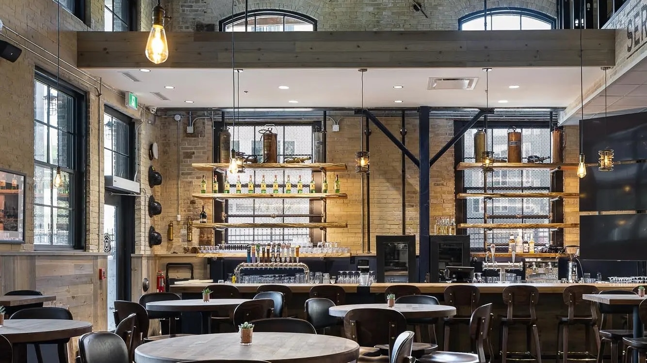 Restaurant in the historic James Avenue Pumhouse, built in 1906.