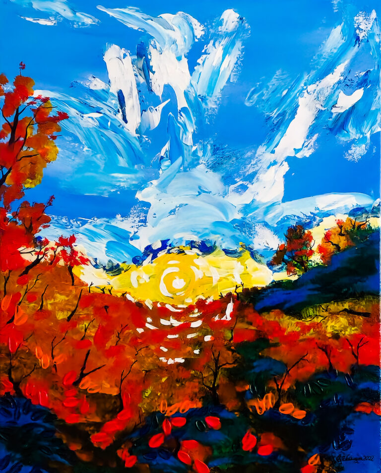 Grassland:. The purpose of my artwork is to relay a vision of joyfulness, in particular, the connection between our daily encounters with our environment and the changing seasons. The environment that my artwork aims to show is the beauty of the forest, partly the boreal forest and the prairie woodlands and grasslands of Manitoba to make a statement and give meaning to their importance.