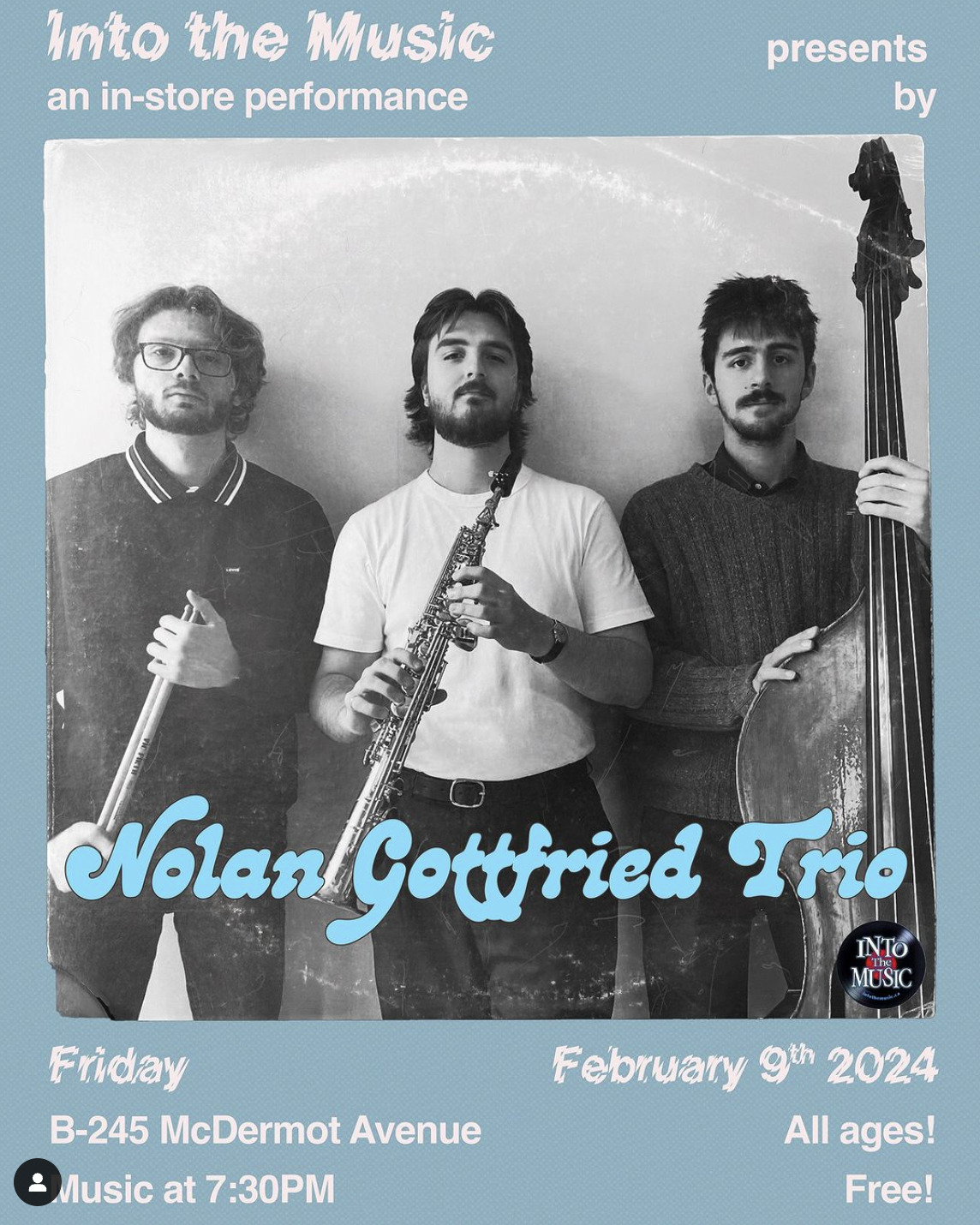 On Feb 9th, the Nolan Gottfried trio performs in-store! 7:30PM, all ages, and free!