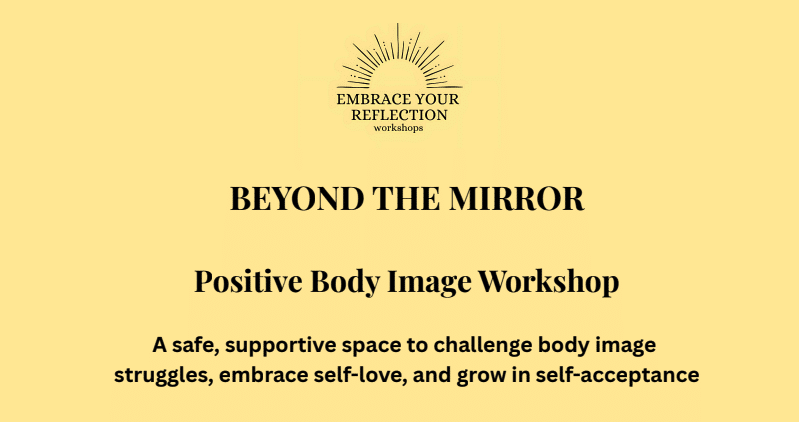 BEYOND THE MIRROR: Positive Body Image Workshop A safe, supportive space to challenge body image struggles, embrace self-love, and grow in self-acceptance What you’ll experience: Yoga – restorative movement to reconnect with your body Reflections…